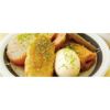 焼津は、昔から魚の町で、黒はんぺん、なると巻、かつおの水揚げも日本一 焼津おでんのスープのベースは、かつおダシで仕上げています。ダシ粉をかけて食べるのが焼津流です。