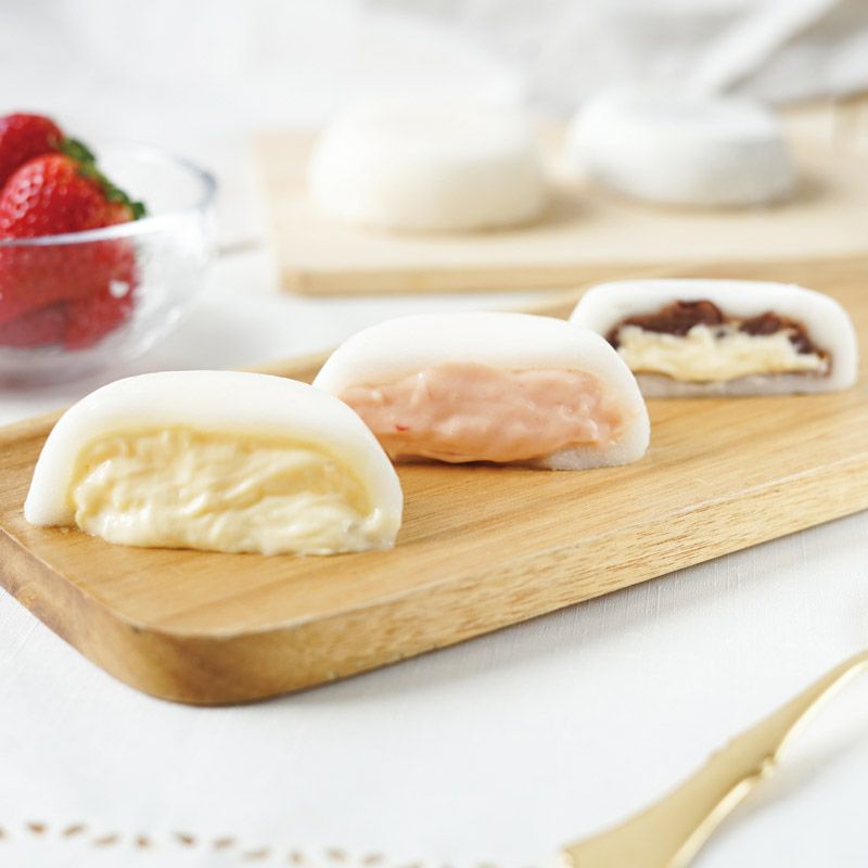 とろけるくりーむ大福(カスタード)×6、とろけるくりーむ大福(つぶあんカスタード・あまおう苺)×各3 ■賞味期限:製造日より冷凍保存で約90日 ■アレルゲン:卵・乳・小麦