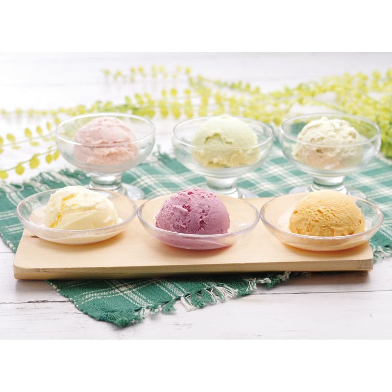 北海道牛乳を使用したアイスセット。人気のバニラに赤肉・青肉メロンやハスカップ、ストロベリーの4種のフルーツの味も楽しめます。