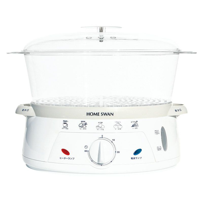 電気で簡単に蒸し料理が作れるスチームクッカー。蒸気が出るまで早く、調理しながら給水もできる。食材の旨味をワンランクアップ。野菜は甘く、肉はジューシー、点心はモチモチに。60分タイマー付きでほったらかし調理OK。