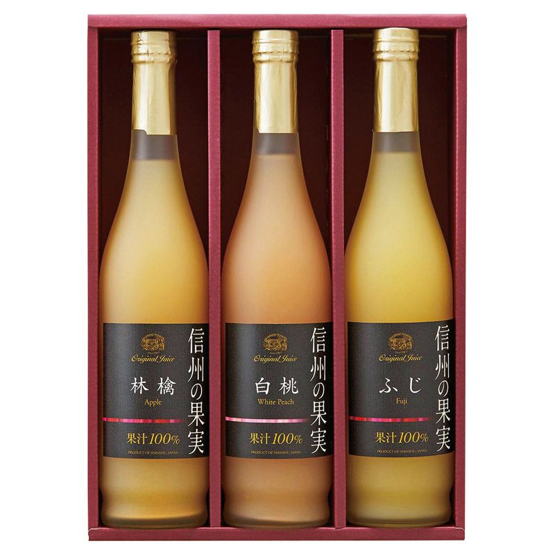 林檎ジュース(500ml)・白桃ジュース(500ml)・りんごジュース(ふじ)(500ml)×各1