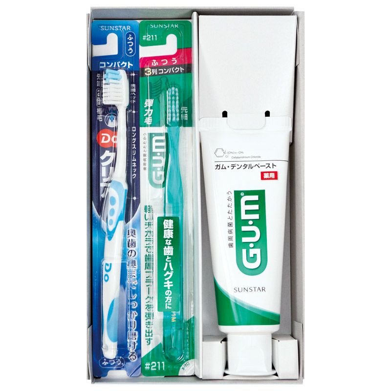 ガムデンタルペーストスタンディングタイプ(約120g)・ガムデンタルハブラシ#211ふつう・ドゥークリアハブラシコンパクトふつう×各1
