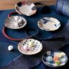 厳選された六柄は、手描きのような味わいが楽しめます。プレゼントやギフトにもピッタリの小皿セットです。箱は小物入れとしてもお使いいただけます。