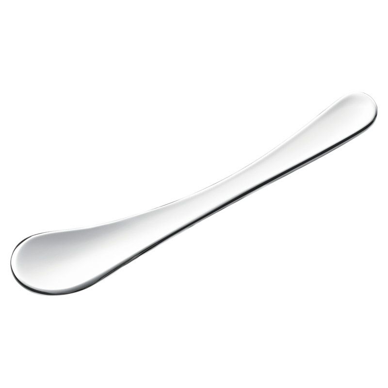 置いた時に先端がテーブルに付かないように作られたステンレス製アイスクリームスプーンです。