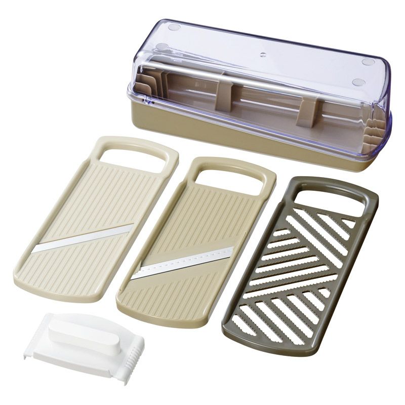 本体(約235×85×88mm)・収納ケース・容器・スライサー・千切り・おろし・安全ホルダー×各1