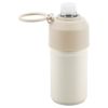 真空二重ステンレスで飲みごろキープ。500~600mlのペットボトルサイズに対応します。持ちやすい大きな輪っかのハンドル付。