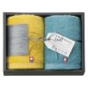 トレンドカラーのタオルとおしゃれなチャコールグレイの箱の組み合わせが洗練された印象を与える、モダンな雰囲気のタオルギフト。