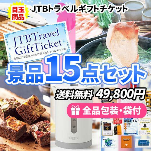 他の画像を見る ディズニーチケットも買えるJTBトラベルギフトをメインに家庭で使えるアイテムがたっぷり入った景品20点セット【一部商品引換券】【送料無料】 当店特別価格 ¥ 39,800 税込 詳細を見る お気に入りに登録する