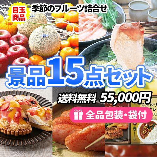 フルーツ、豚しゃぶ、スイーツetc...ちょっと贅沢な食品景品15点セット
