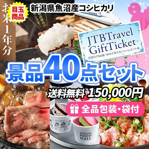 お米1年分にトラベルチケット!嬉しい目玉商品が入った景品40点セット
