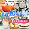 ル・クルーゼココットを目玉に自転車・産直品を加えた景品10点セット