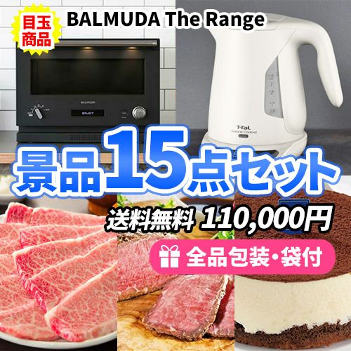 バルミューダオーブンレンジを目玉に便利&美味しい商品満載の景品15点セット