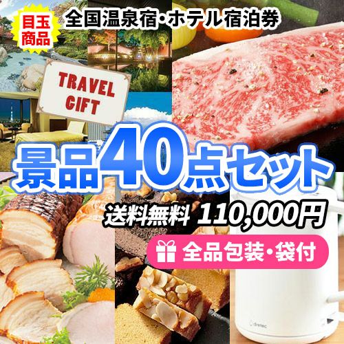 全国温泉宿・ホテル宿泊券を目玉に幅広い人に喜ばれる景品40点セット