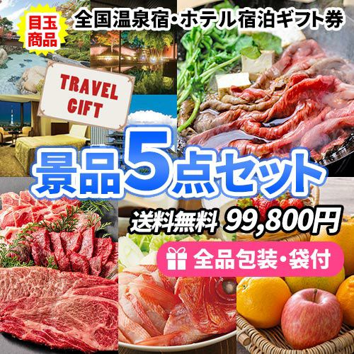 全国温泉宿・ホテル宿泊券に松阪牛に神戸牛!目玉商品ばかりの景品5点セット