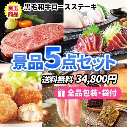 黒毛和牛ステーキが目玉の美味しい景品5点セット