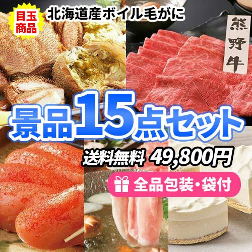 豪華産直品!北海道産毛がにが目玉の食品ばかり景品15点セット