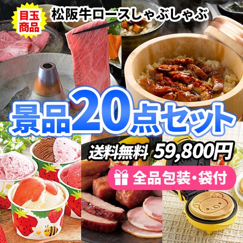 松阪牛しゃぶしゃぶを目玉に人気グルメが入った景品20点セット【一部商品引換券】【多点数】【送料無料】