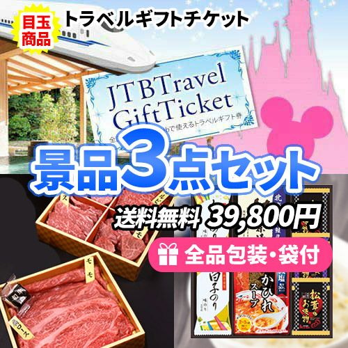 トラベルギフトチケットをメインに国産牛食べ比べとスープギフトの景品3点セット