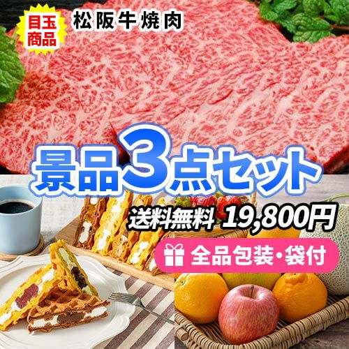 松阪牛にフルーツ&スイーツ!男性も女性も嬉しい景品3点セット