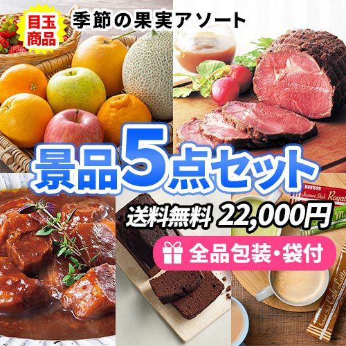 季節のフルーツ盛合せをメインに届くのが楽しみな産地直送食品景品5点セット