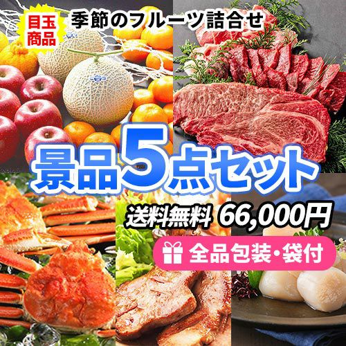 届くのが楽しみな食品ばかり!季節のフルーツ盛合せが目玉の景品5点セット