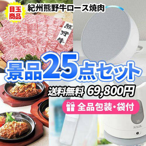 熊野牛すき焼きを目玉に家庭で便利な家電・雑貨の入った景品25点セット