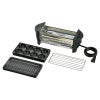 本体(約110×300×105mm)・グリルプレート・たこ焼きプレート・アミ・オイルトレイ×各1 ■材質:PBT・スチール(フッ素樹脂加工)・アルミダイキャスト(フッ素樹脂加工)・スチール(クロムメッキ)・ステンレス ■電源:AC100V-500W