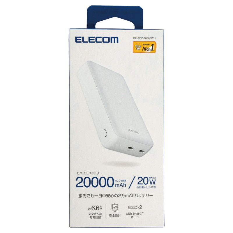 ELECOM 20000mAh 2C PD20W モバイルバッテリー