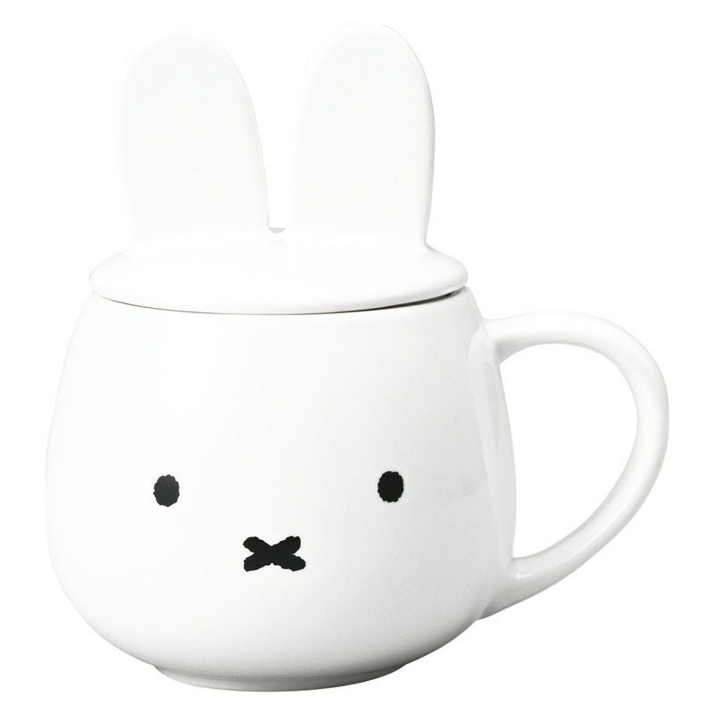 ミッフィーのお耳のついたフタのマグカップ。ぽってりまあるい形が愛らしいマグカップです。