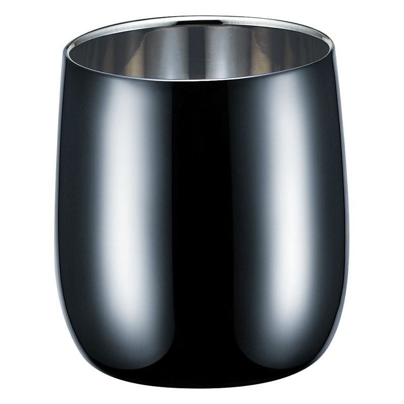 18-8ステンレスを酸化被膜により黒く染めた後、職人が一つ一つ丁寧に磨き込むことで、黒い輝きを放ちます。2重構造で、温かさ・冷たさが長持ちします。