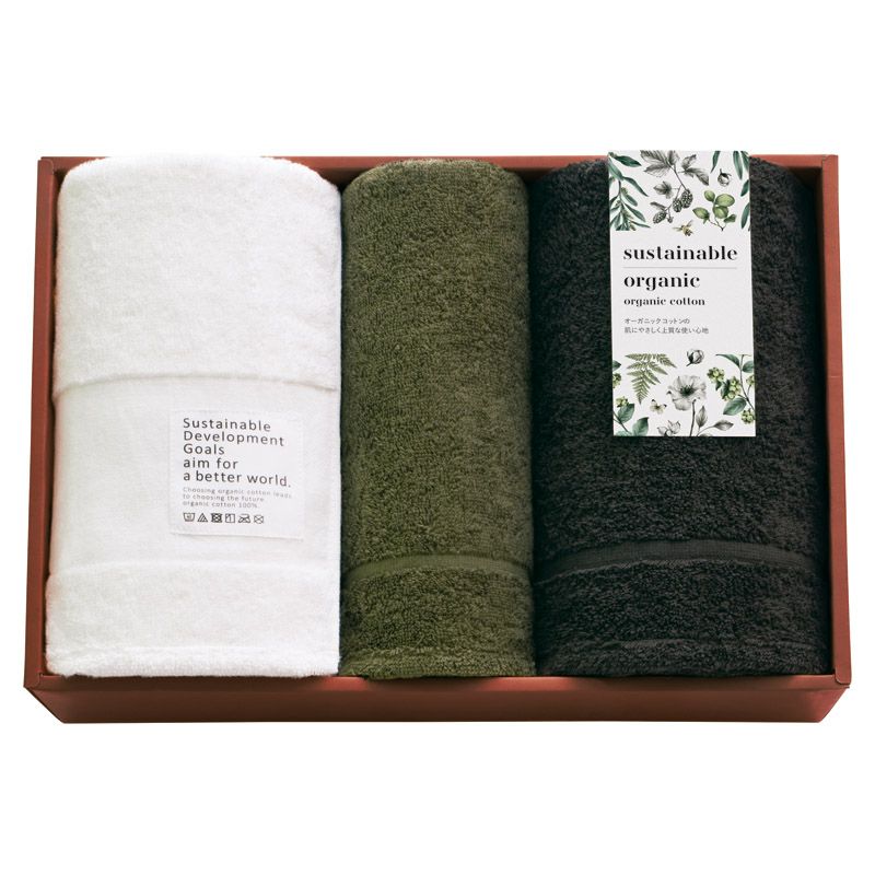 バスタオル(約600×1200mm)×2、フェイスタオル(約340×850mm)×1 ■材質:綿100%(オーガニックコットン100%)