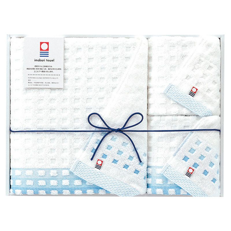 今治の海をイメージした爽やかな色使いのタオルです。