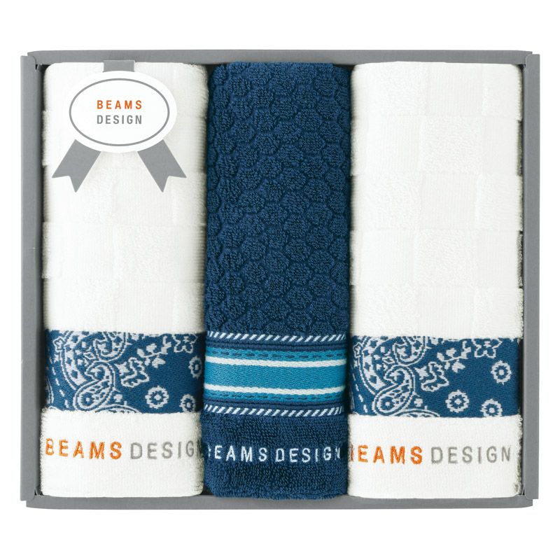 BEAMS DESIGN チェッカーバンダナ フェイス2P・タオルハンカチ1P(ネイビー)