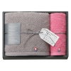 トレンドカラーのタオルとおしゃれなチャコールグレイの箱の組み合わせが洗練された印象を与える、モダンな雰囲気のタオルギフト。