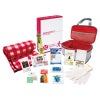 圧縮収納バッグ(約180×270×125mm)×1、ホイッスル・カイロ・レインコート・抗菌消臭簡易トイレ・発光スティック・軍手・アルミブランケット・綿棒&絆創膏・マスク・除菌アルコールウェットティッシュ・水に流せるペーパー・フリースブランケット×各1