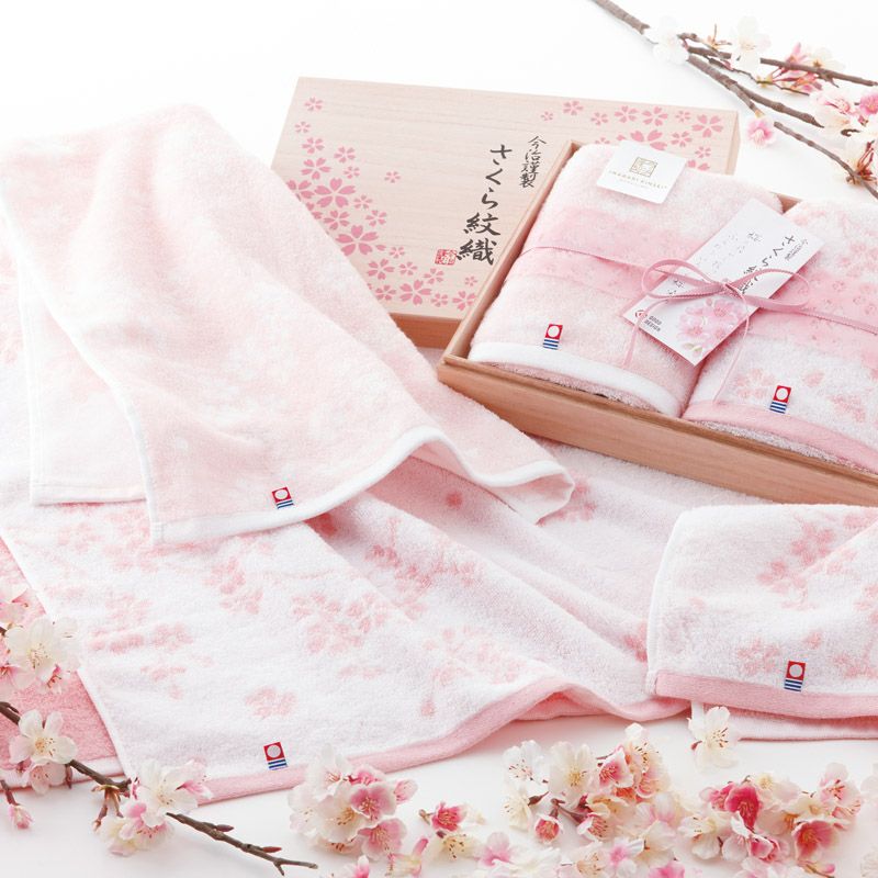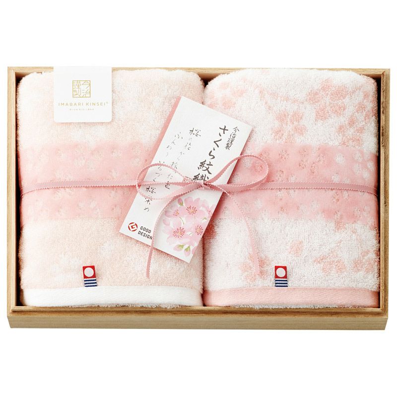 今治謹製 さくら紋織 木箱入り桜染めフェイスタオル2P