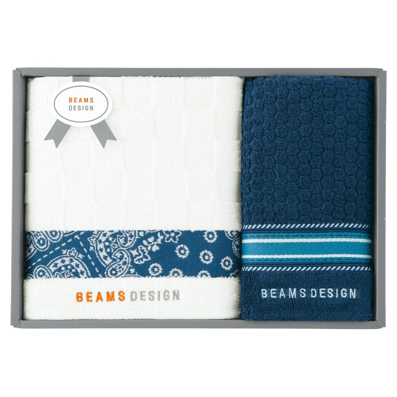 BEAMS DESIGN チェッカーバンダナ バス1P・フェイスタオル1P(ネイビー)