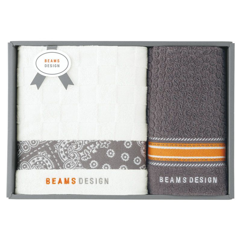 BEAMS DESIGN チェッカーバンダナ バス1P・フェイスタオル1P(グレー)