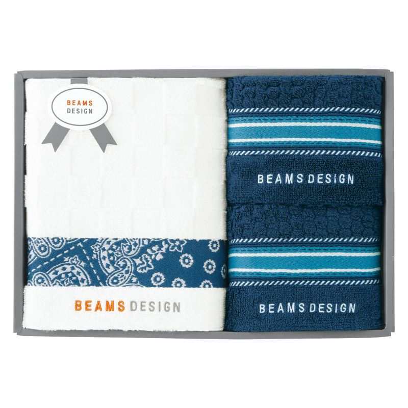 BEAMS DESIGN チェッカーバンダナ バス1P・フェイスタオル2P(ネイビー)