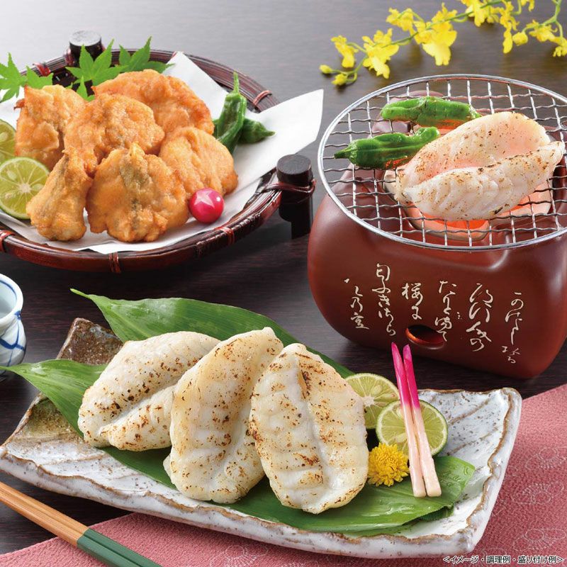 やさしい塩味のふく一汐と揚げ上がり香ばしいふくの唐揚げ、国産天然ふくを使用した定番のふく加工品のベーシックでお手軽な詰合せです。