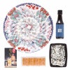 とらふく刺身130g(プラスチック皿30cm)、とらふく皮湯引き80g、焼きとらふくひれ4g、ふく醤油150ml、もみじおろし10g×4