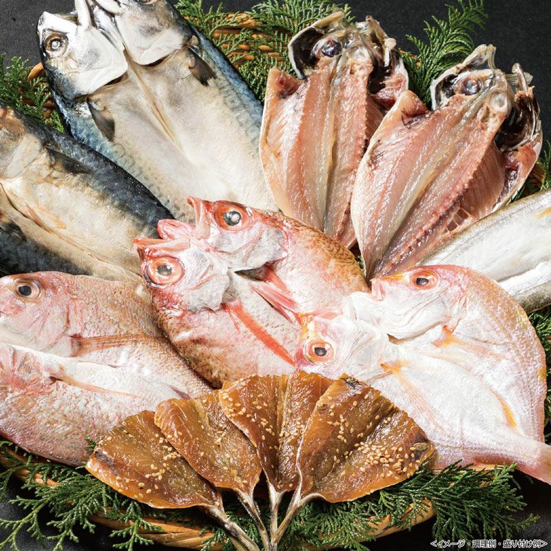真鯵90g×2、れんこ鯛140g、真鯛140g、かます70g、赤むつ(のどぐろ)180g、さば150g×2、あじみりん干し25g×4