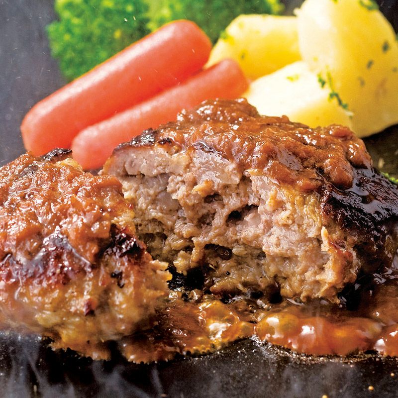 赤城牛ともちぶたが入った本格派レストランハンバーグ パテは肉屋が作ったからこその粗挽き&無添加。味の深さに配慮をほどこしたデミソース付き。冷凍保存で、温めてていただくだけでお召し上がりいただけます。