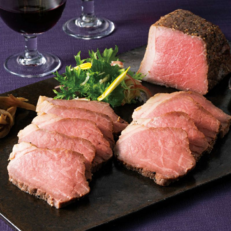 じっくりと調理して柔らかく仕上げたローストビーフを加賀屋のたまり醤油で風味付けしました。ほんのりと醤油の香る上品な仕上がりです。