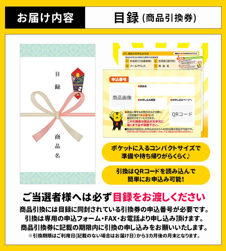 豊富な商品が目録対応で準備もお持ち帰りも楽々!