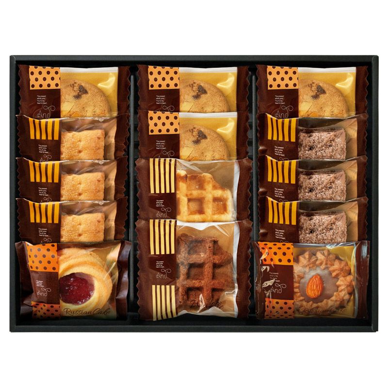 ロシアケーキ(ブルーベリーサン・チョコアーモンド)・ワッフル(プレーン・チョコ)×各1、スクエアパイ(プレーン・ショコラ)×各3、ナッツとチョコのざっくりクッキー×4