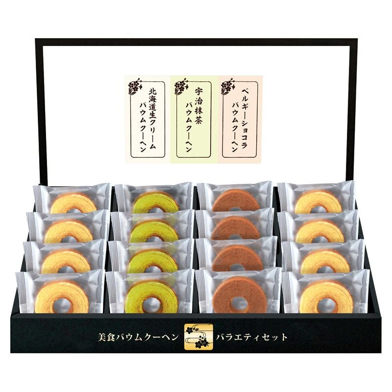 ミニバウムクーヘン(北海道生クリーム)×8、ミニバウムクーヘン(宇治抹茶・ベルギーショコラ)×各4