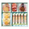 ココアフランボワーズクッキー×1、フランボワーズクッキー・バニラマドレーヌ・ココア型押しクッキー・バニラ型押しクッキー×各2、ブルーベリースティックパイ×5
