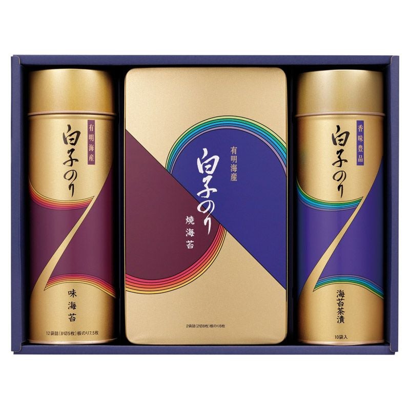 味のり12袋詰(8切5枚)・焼のり2袋詰(2切8枚)・のり茶漬け(10袋)×各1 ■アレルギー:乳・小麦・えび