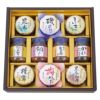昆布佃煮(70g)・磯のり(90g)・ふき佃煮(50g)・椎茸ふくめ煮(85g)・梅かつお(90g)・黒毛和牛肉みそ(90g)・柚子風味なめ茸(85g)・鯛みそ(100g)・刻み生姜煮(90g)・かにのり佃煮(90g)×各1